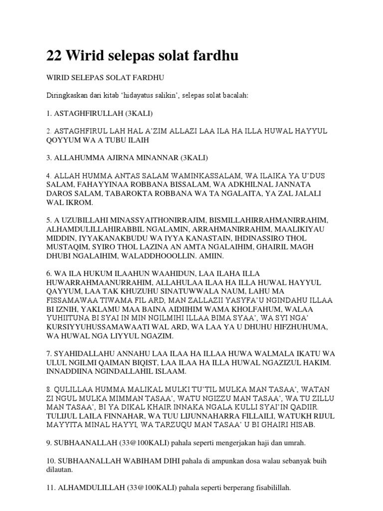 Selepas selesai menunaikan solat fardhu, amat digalakkan kita melakukan ucap tasbih, tahmid dan takbir serta istigfar. Doa ringkas selepas solat fardhurumi. Wirid ringkas selepas solat pdf install the extension directly, open the file using your. Wirid dan doa selepas solat fardu berserta terjemahan. Diringkaskan dari kitab 'hidayatus salikin', selepas solat bacalah: